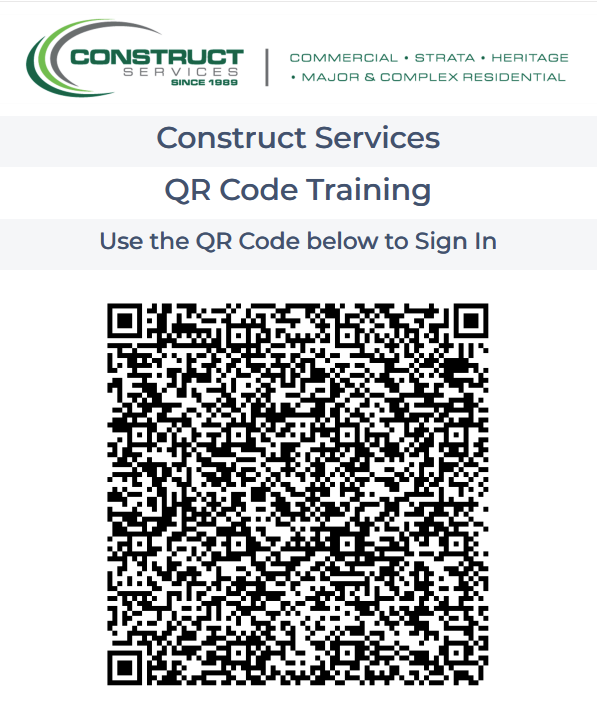 As part of our ongoing commitment to safety, compliance, and site accountability, all Construct Services trade partners will continue to see QR code sign-in posters at the entrance of Ensureflow-managed projects, with similar processes used on HammerTech sites for higher-risk or higher-value jobs.